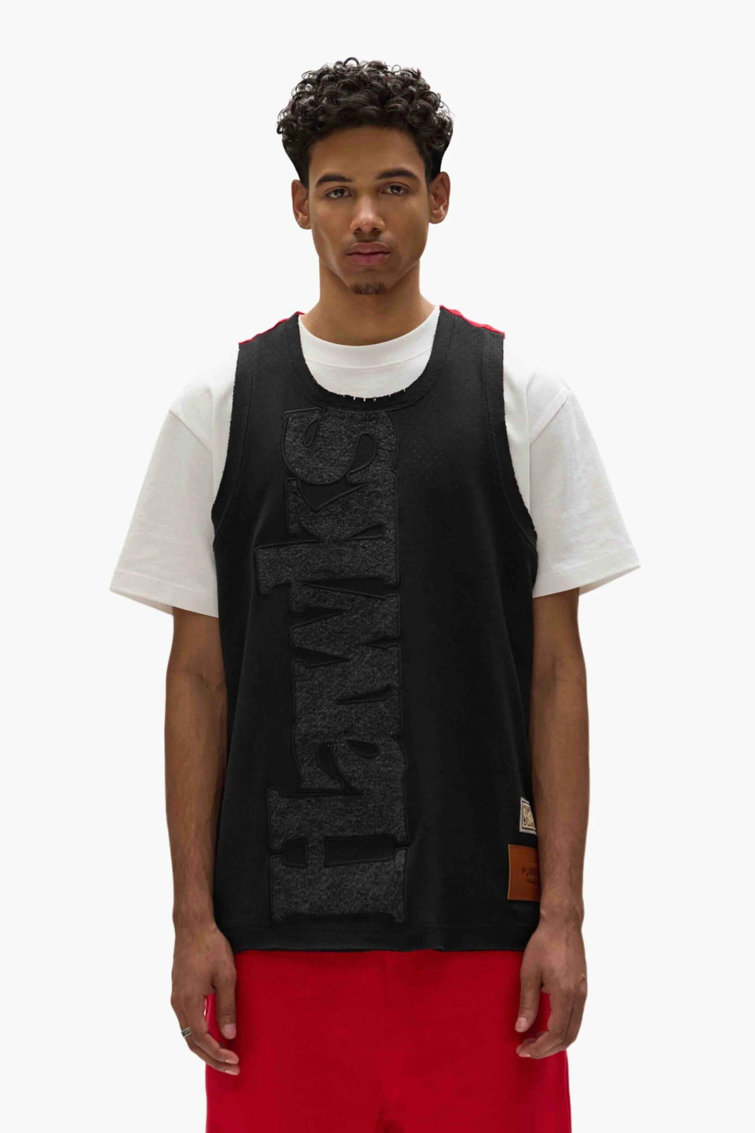 Reinterpreted with a nostalgic design and luxe detailing. This jersey is cut from heavyweight sport mesh, featuring embroidery details and a raw edge finish at the neck & hem.