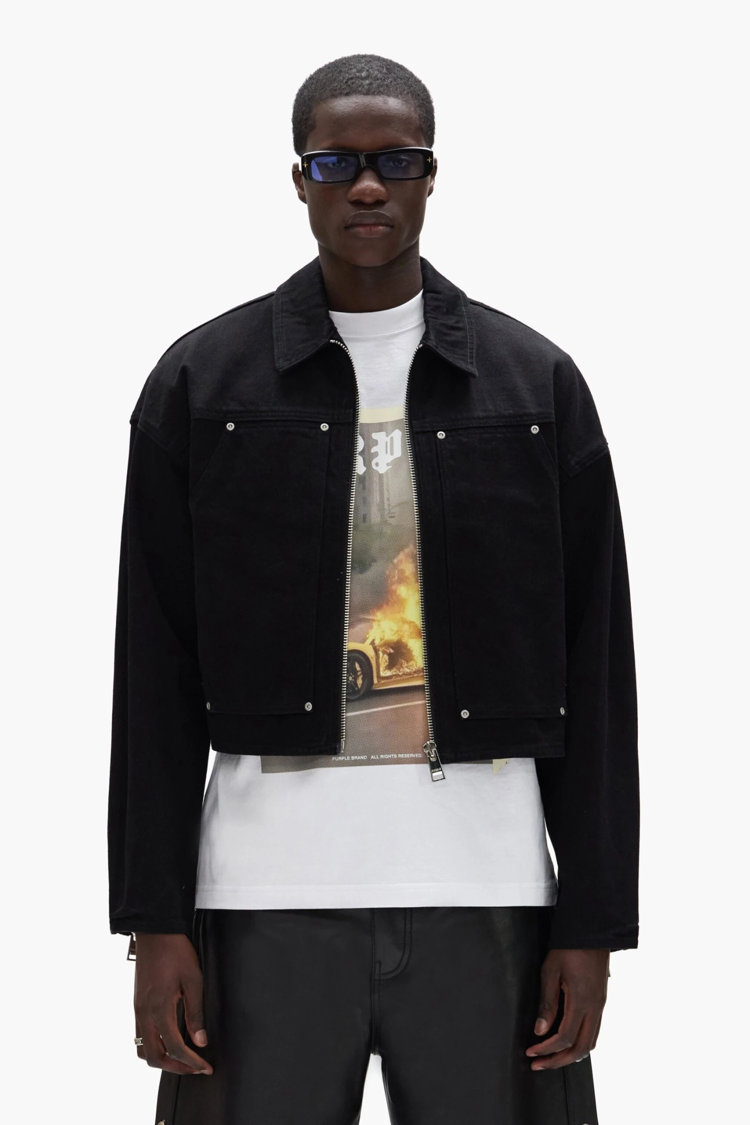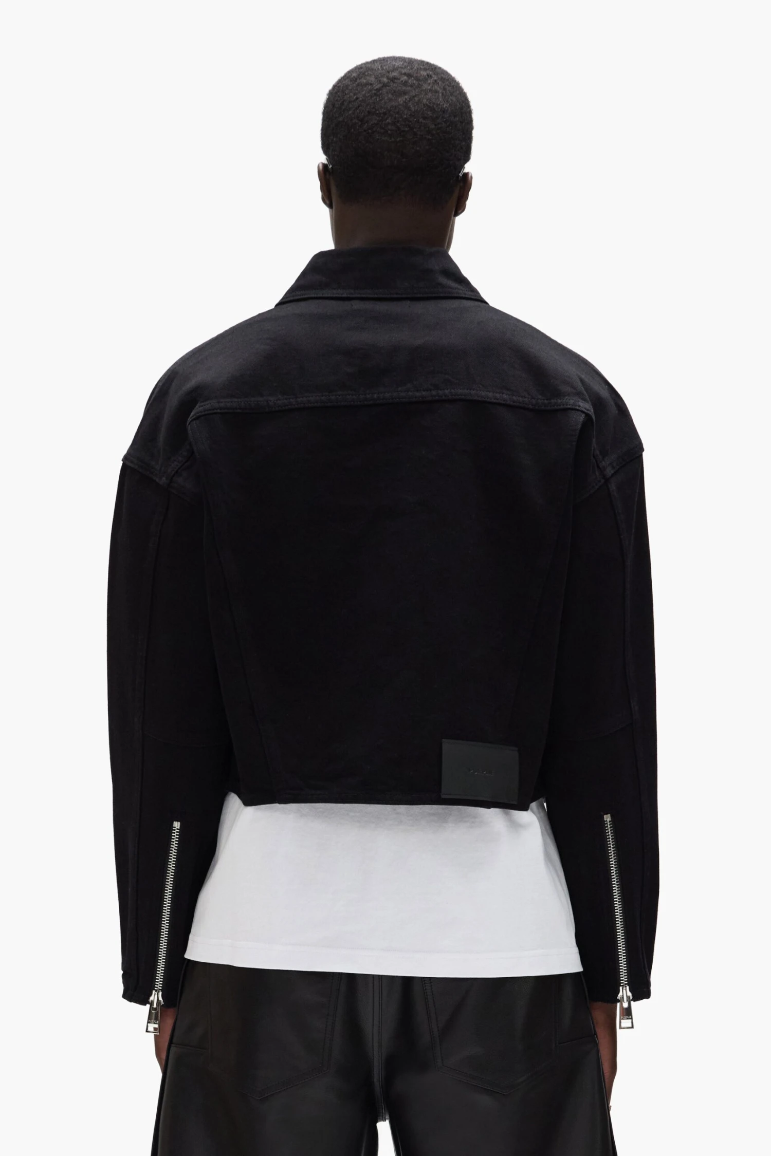 This carpenter jacket is crafted from premium cotton denim in a medium indigo wash, with classic workwear construction. It’s cut for a relaxed, cropped fit with front and back yokes, paneled chest pockets, darted elbows and exposed zippers at the sleeves.