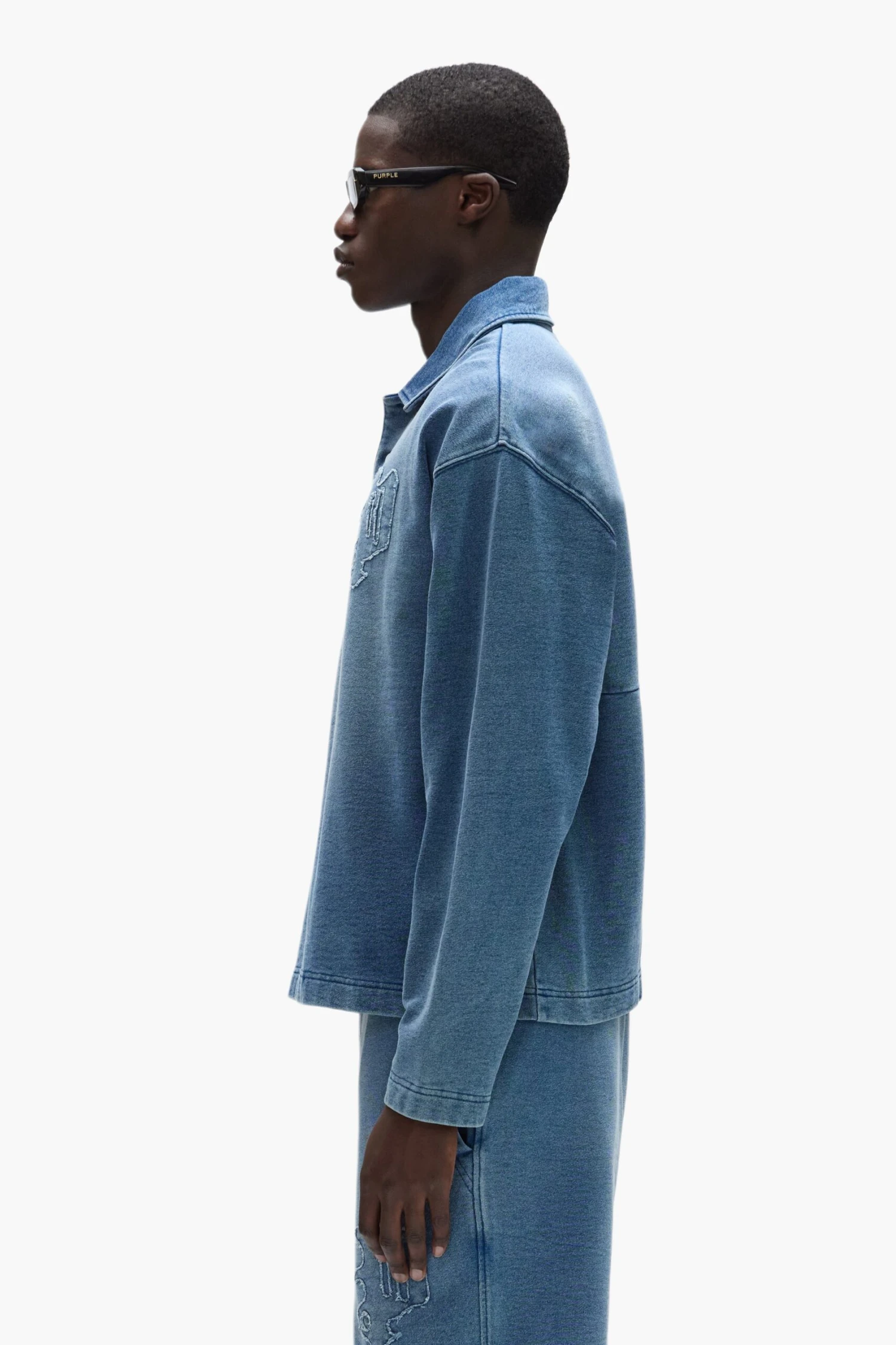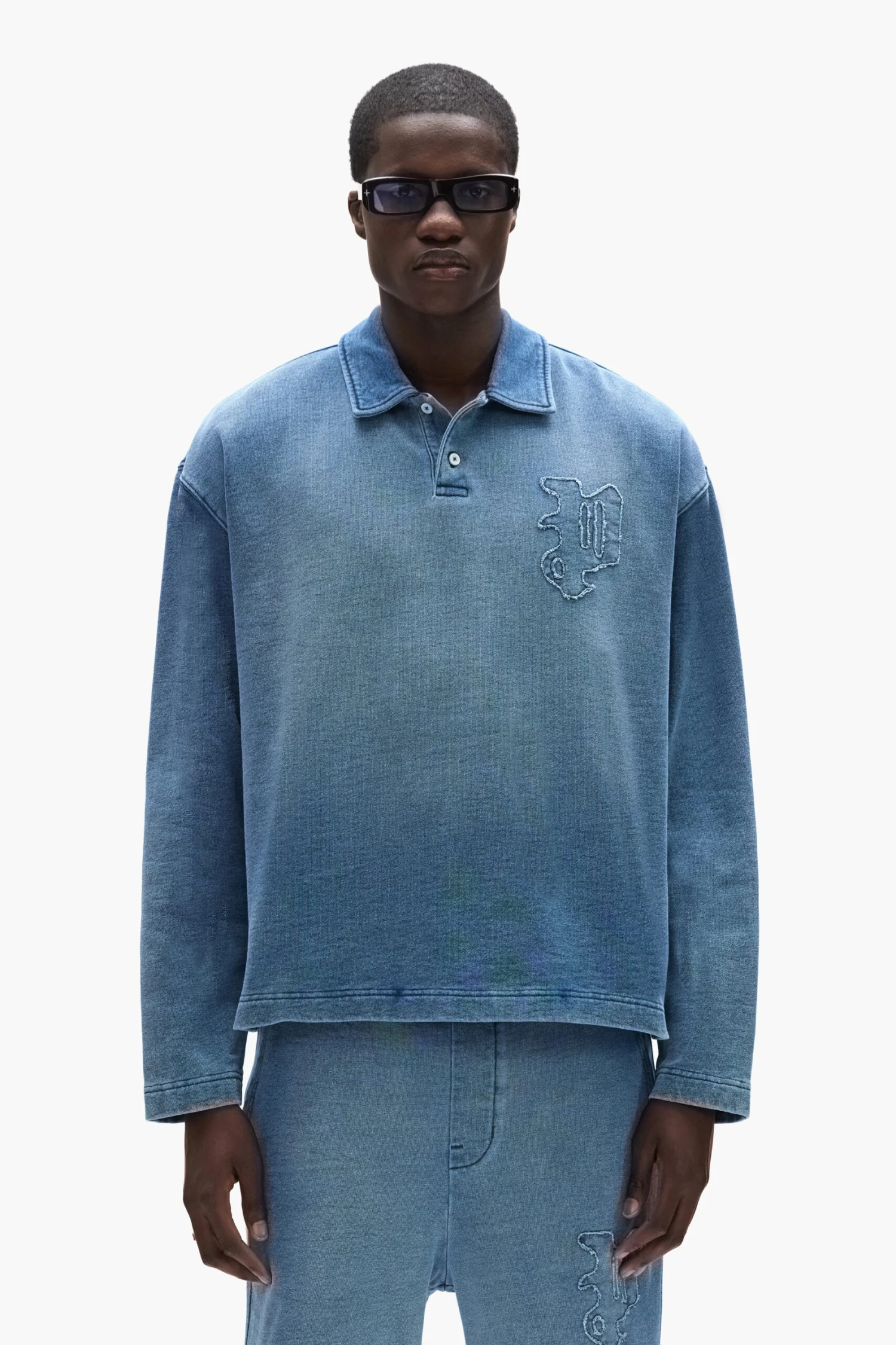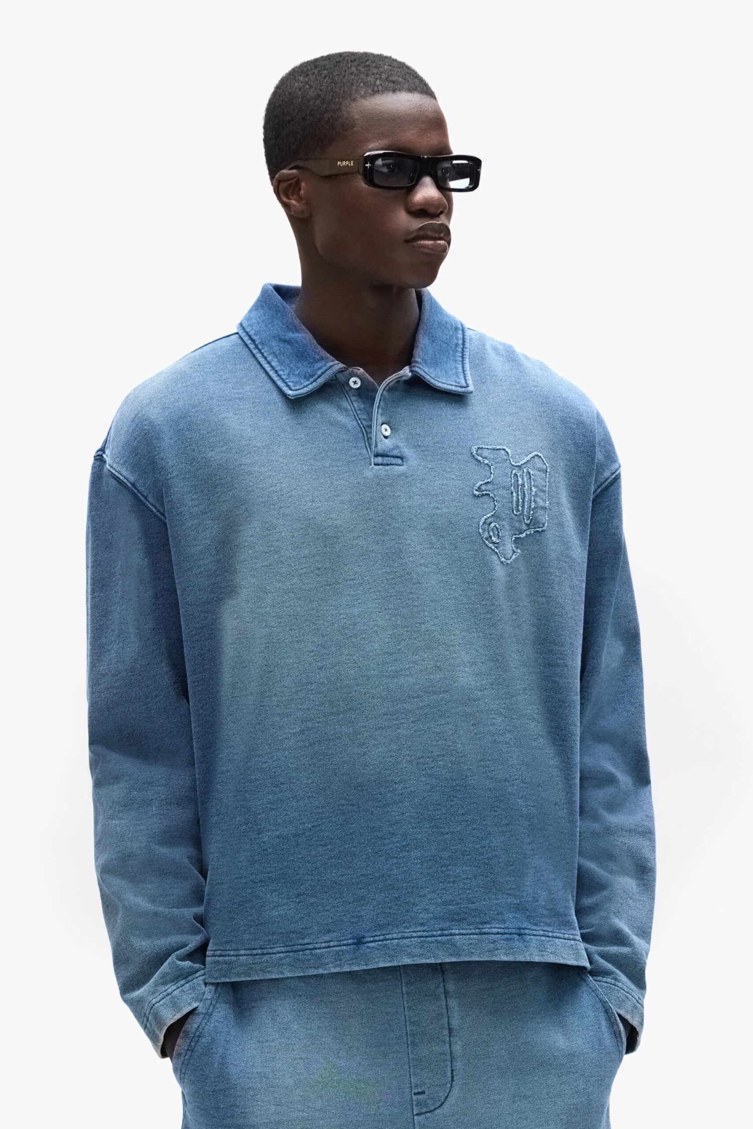Crafted from 100% cotton midweight fleece, this regular-fit polo shirt features a self applique gothic “P” on the chest and a button-down placket with snap closures.