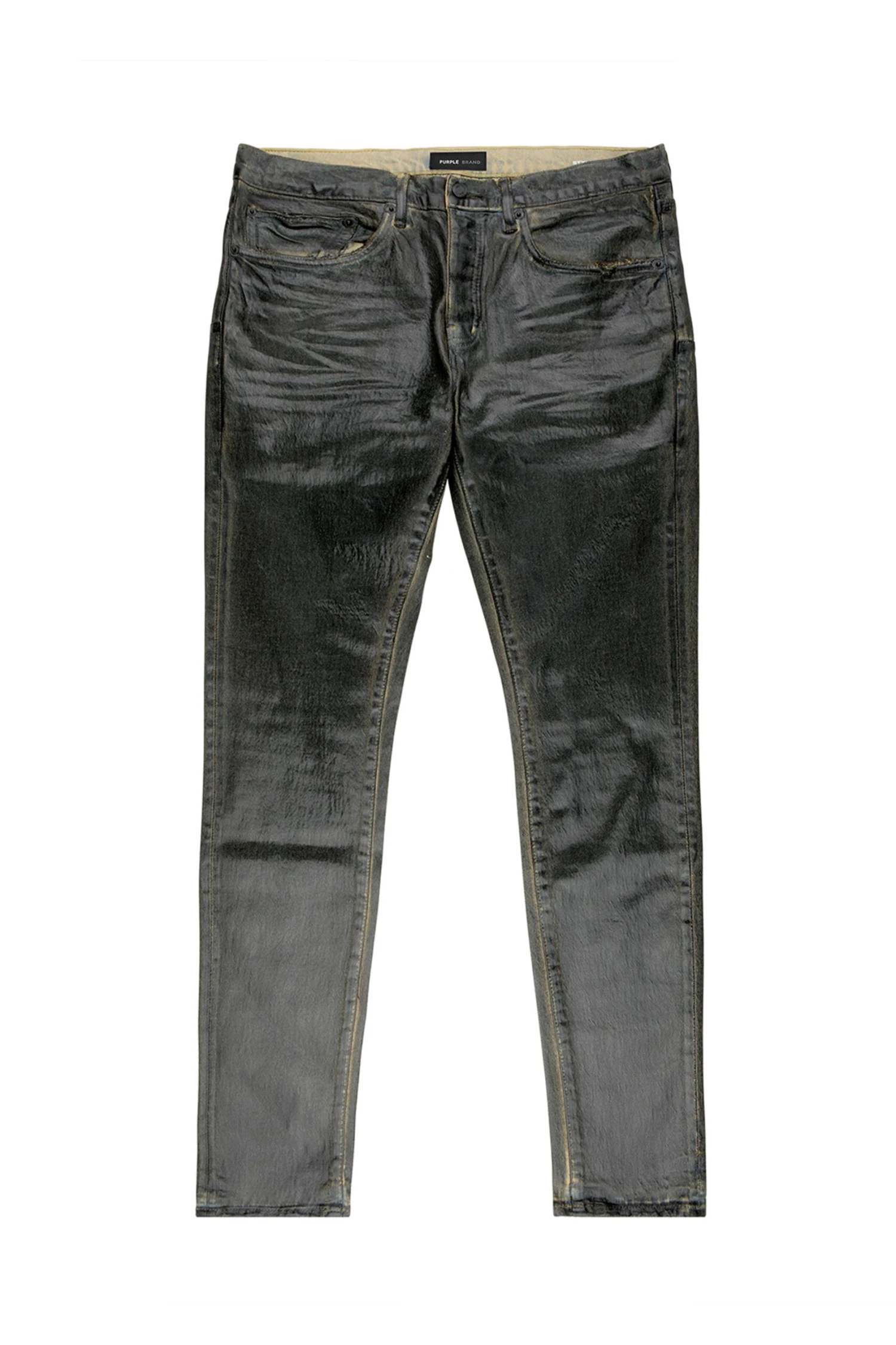 Crafted from premium brown stretch denim, this low rise skinny is coated and tinted in black for a patent like finish.