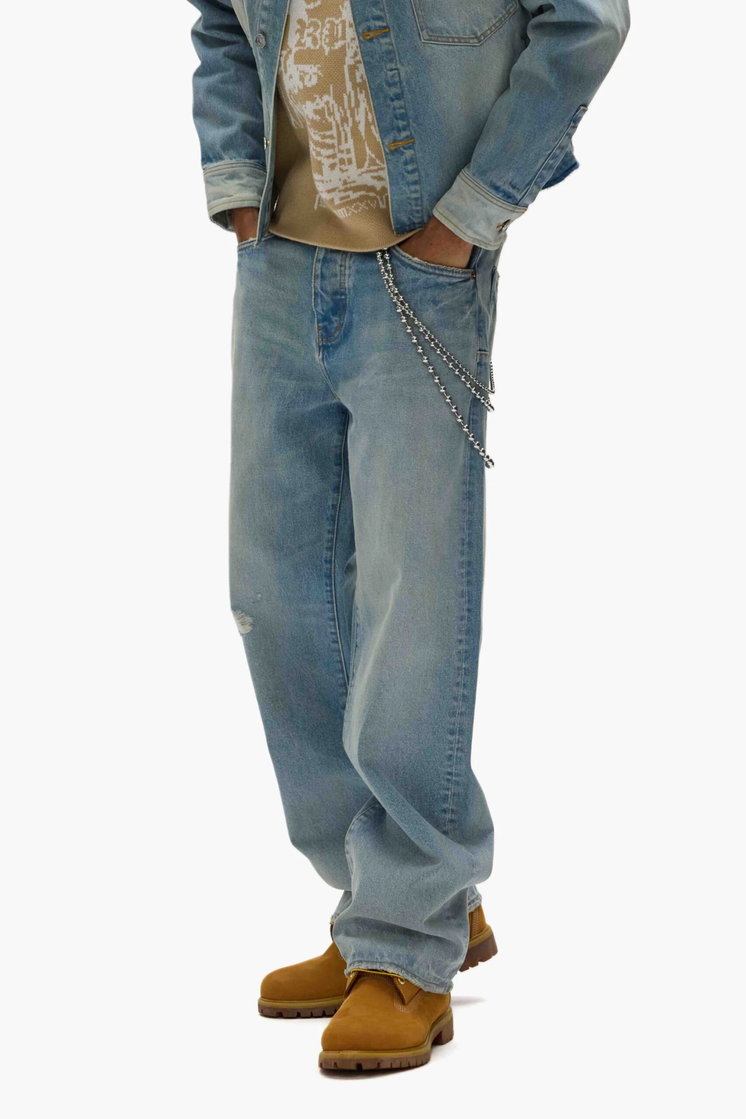 Each jean is packaged and secured with ties to preserve custom details like our the 3D wrinkle effect or custom paint finishes while shipped.