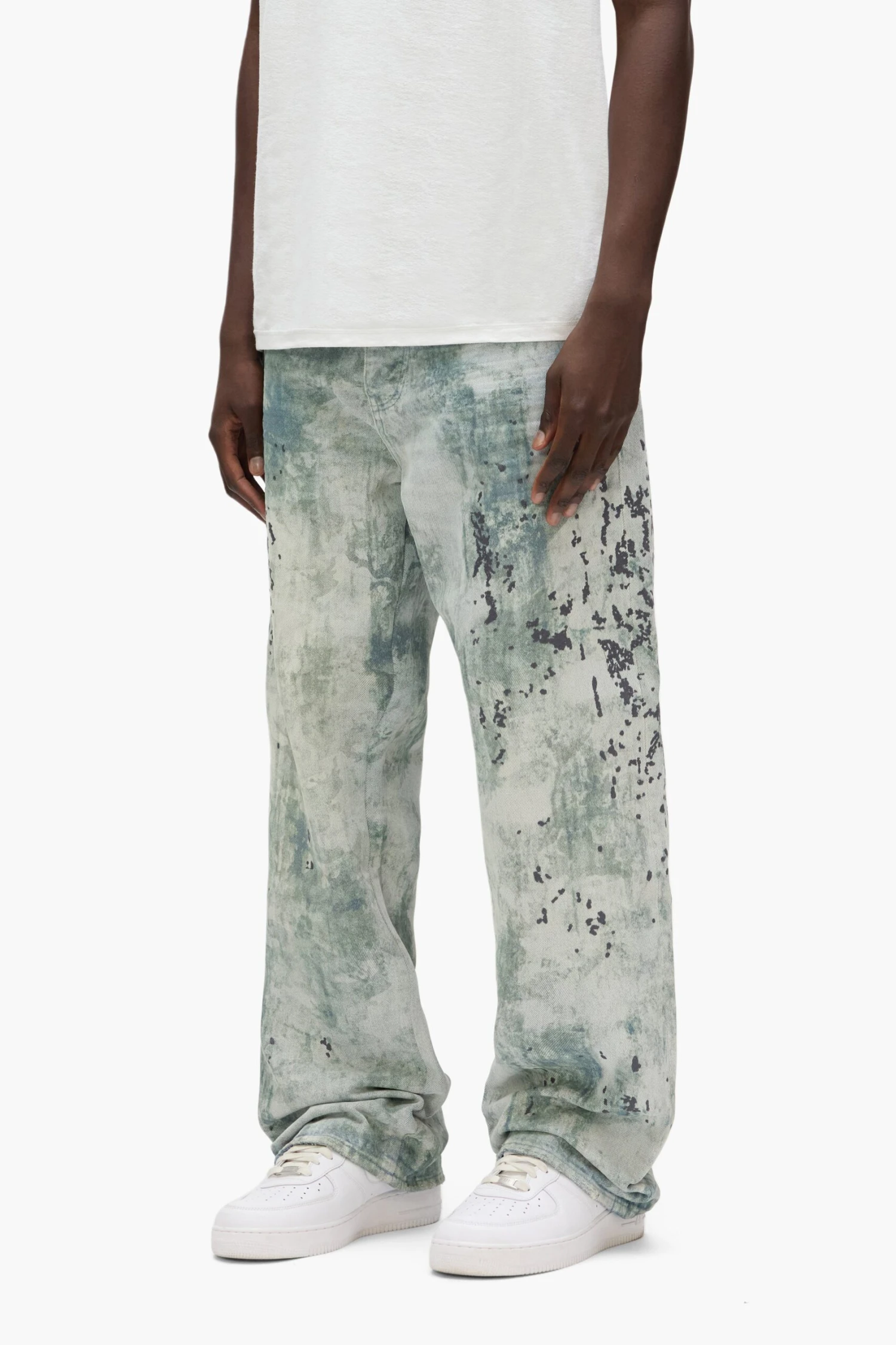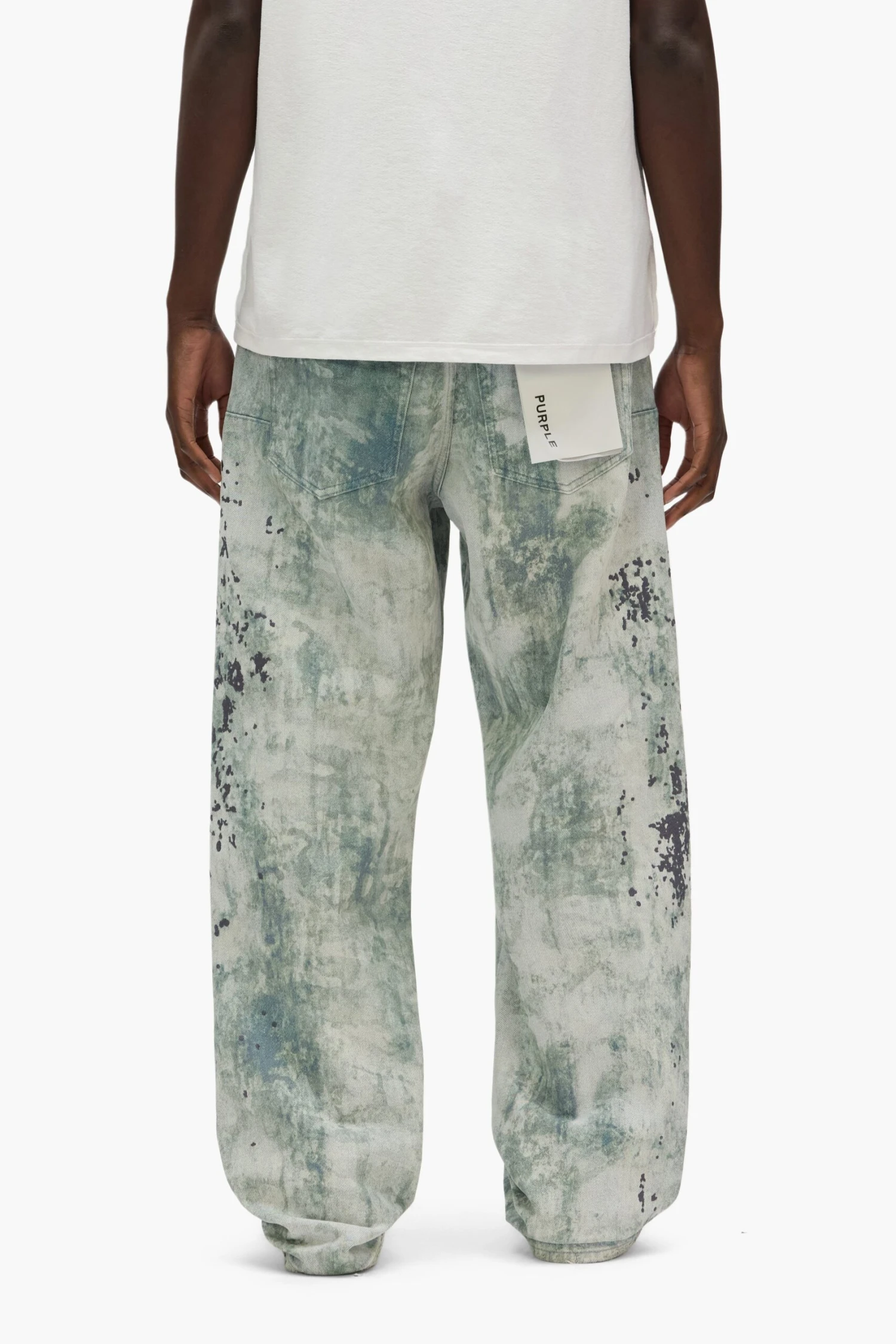 Our P018 is a mid-rise men’s jean, crafted from premium denim with classic five-pocket construction that includes a button-fly closure and reinforced belt loops as well as hidden rivets and an inner lining on the back pockets for durability. It’s cut loose for a baggy fit and comes in a light indigo wash, digitally printed with worn-out camo embroidery. A custom Purple cowhide leather patch, a back pocket flasher and a logo hangtag lend signature branded finishes.