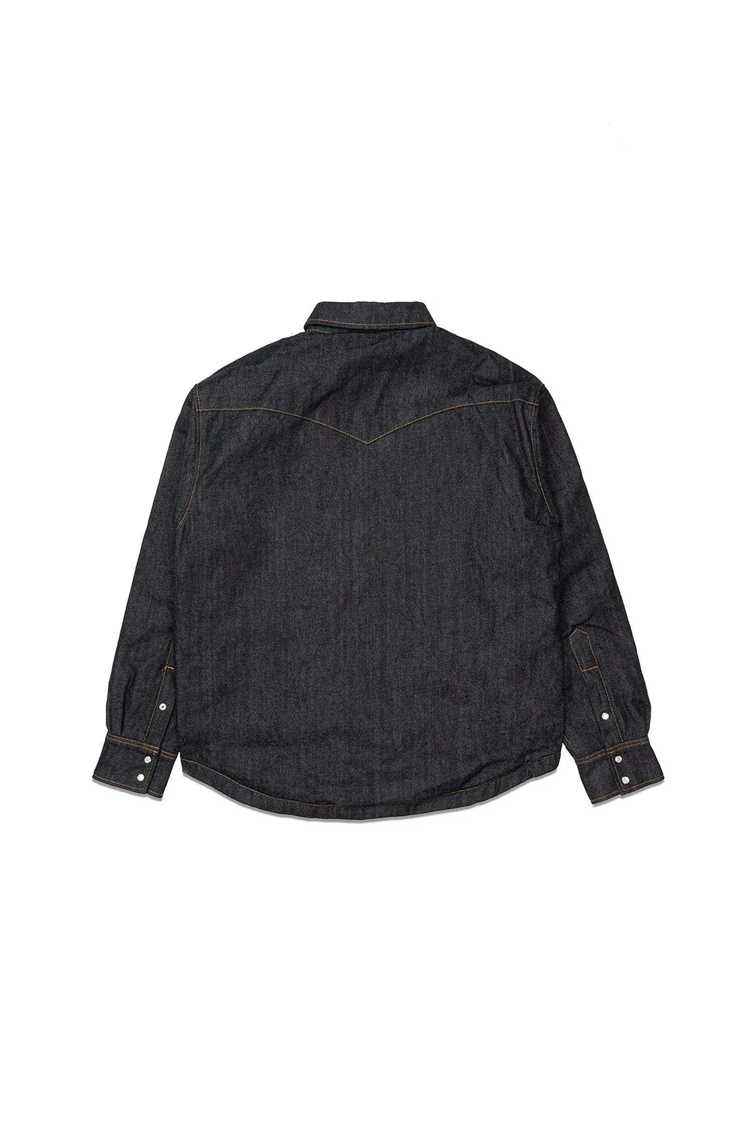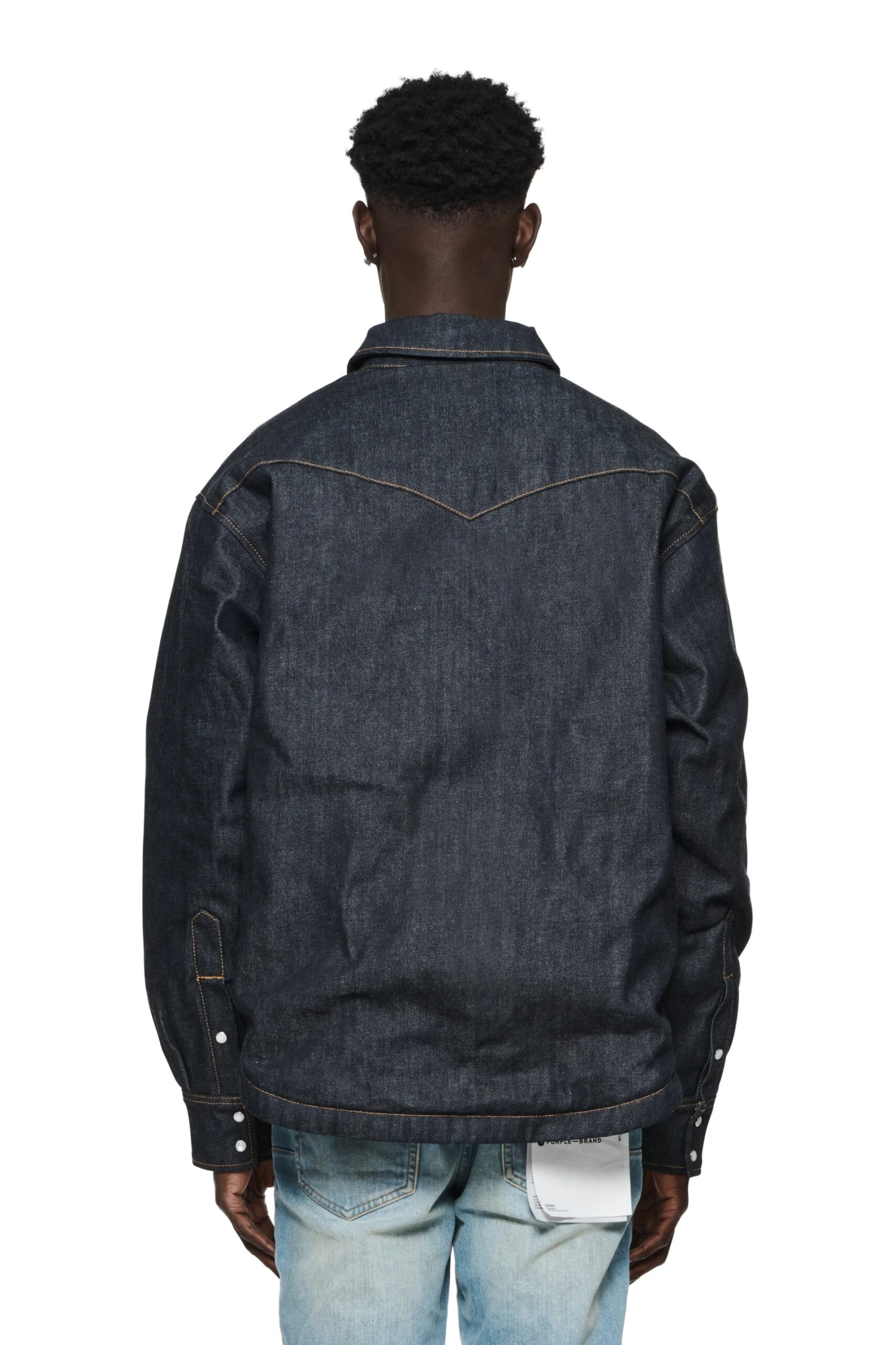 This jacket is cut for a regular fit and incorporates details from both Western and trucker styles. It comes in a dark indigo wash, padded on the interior for added warmth, with double patch pockets, contrast buttons and signature hang tag branding.