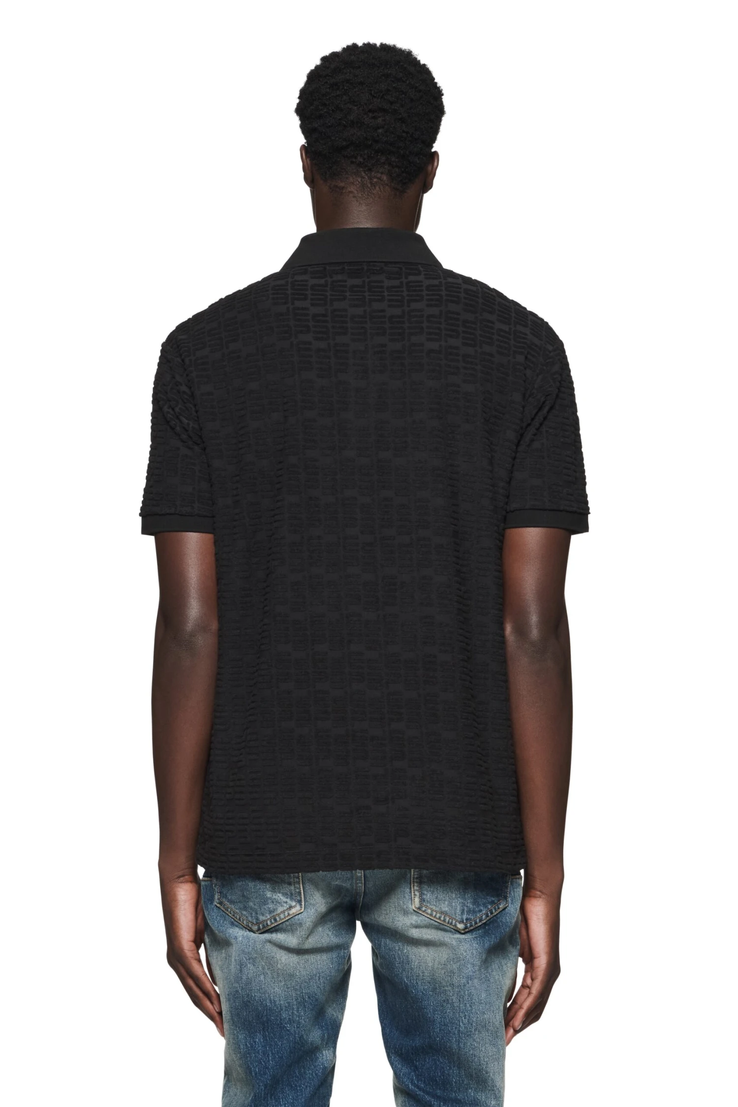 Cut from black towel-terry fabric with Purple Brand logo lettering at the chest, this short-sleeve polo is designed to a standard fit, with a three-button opening.