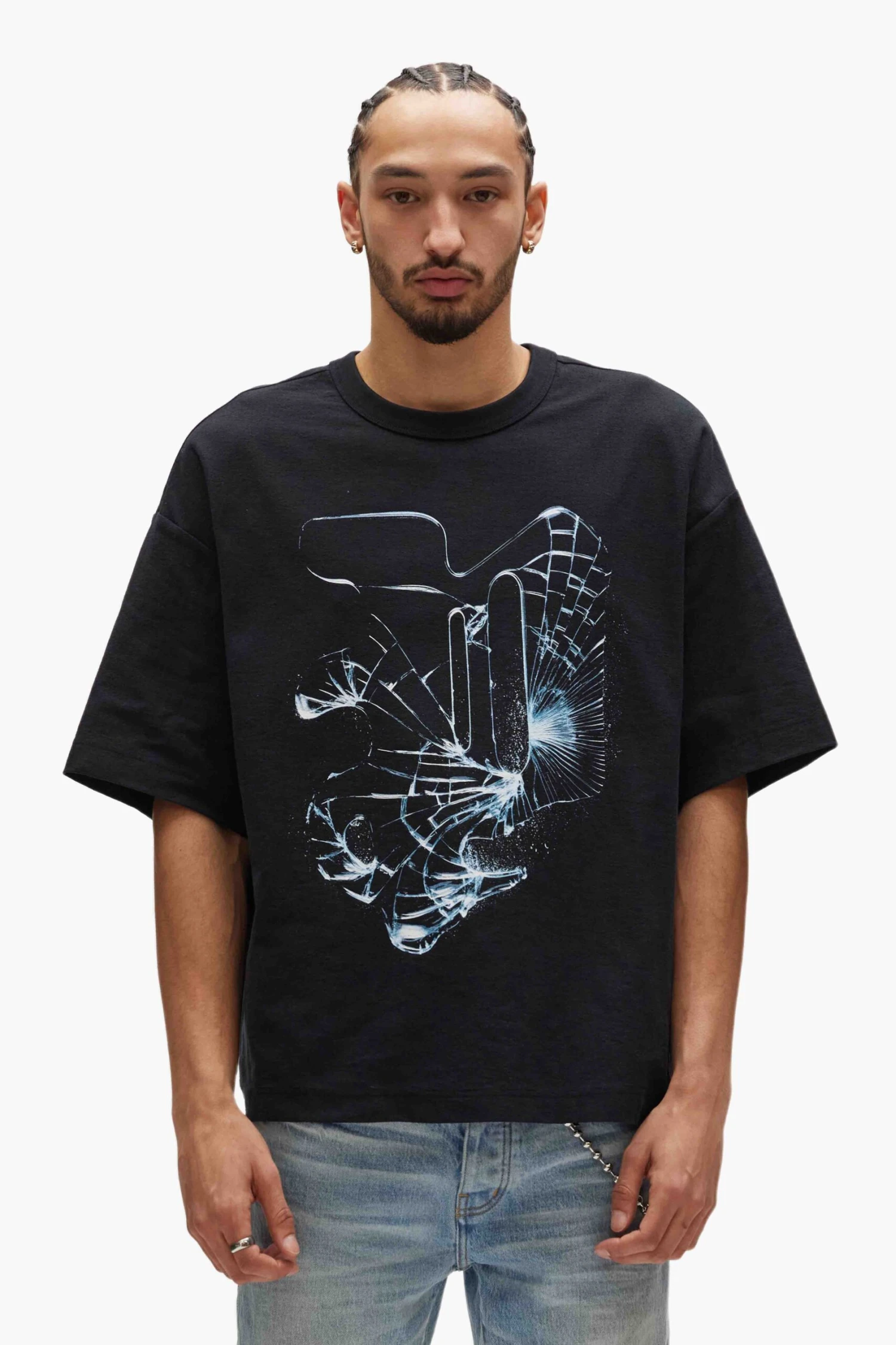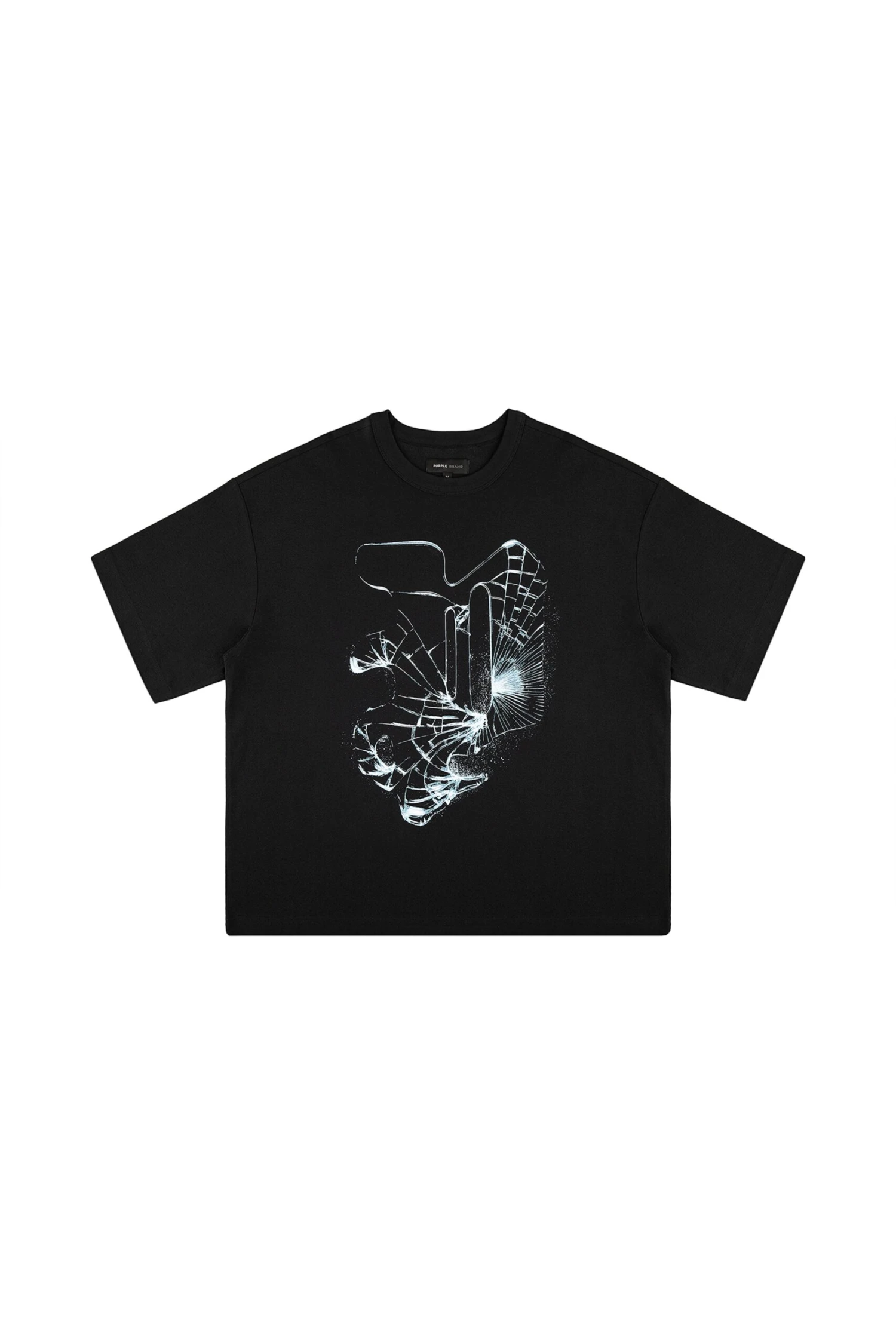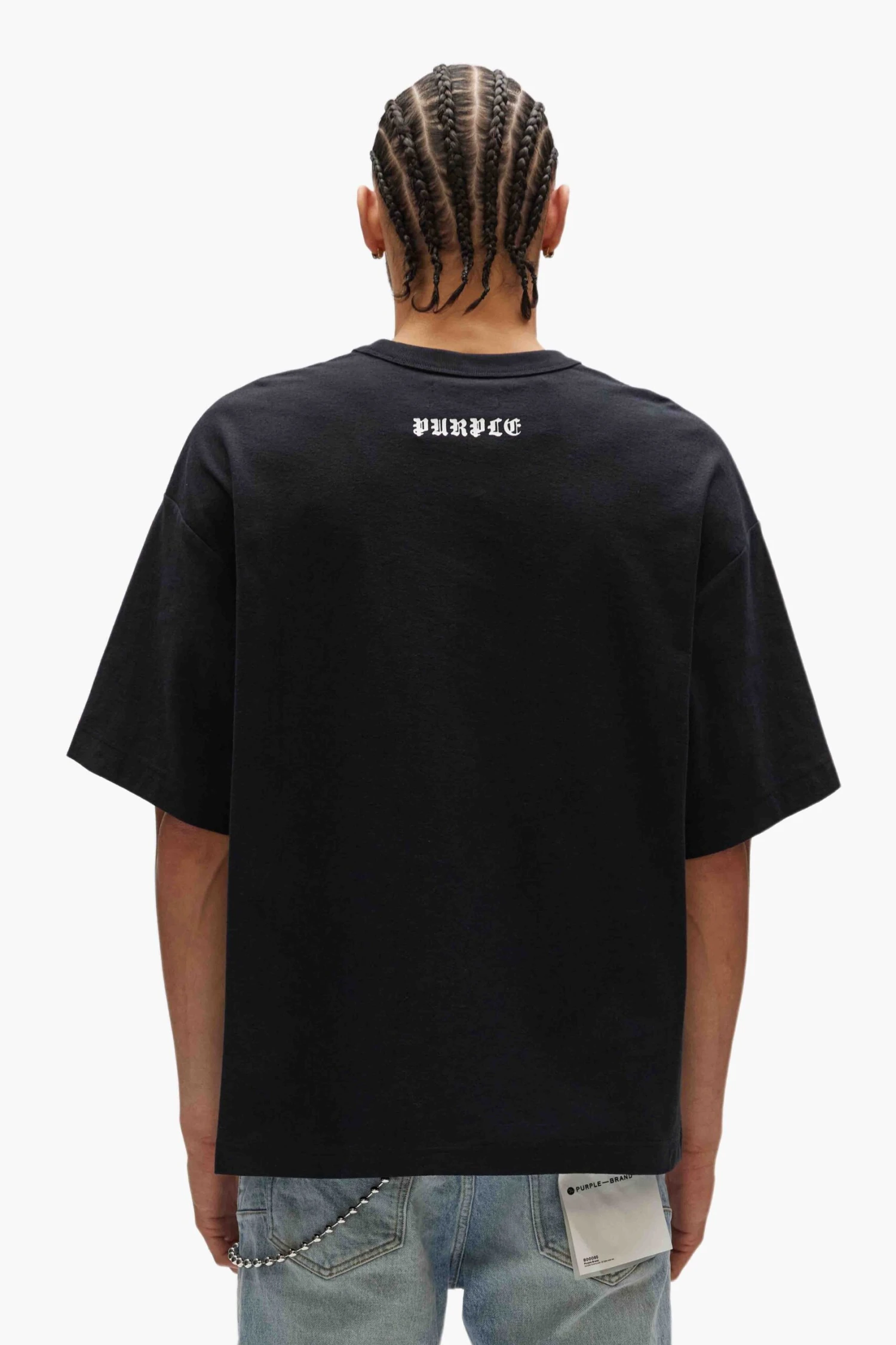This short sleeved tee is cute from black 100% cotton textured jersey. This style features a large gothic “P” graphic on the front.
