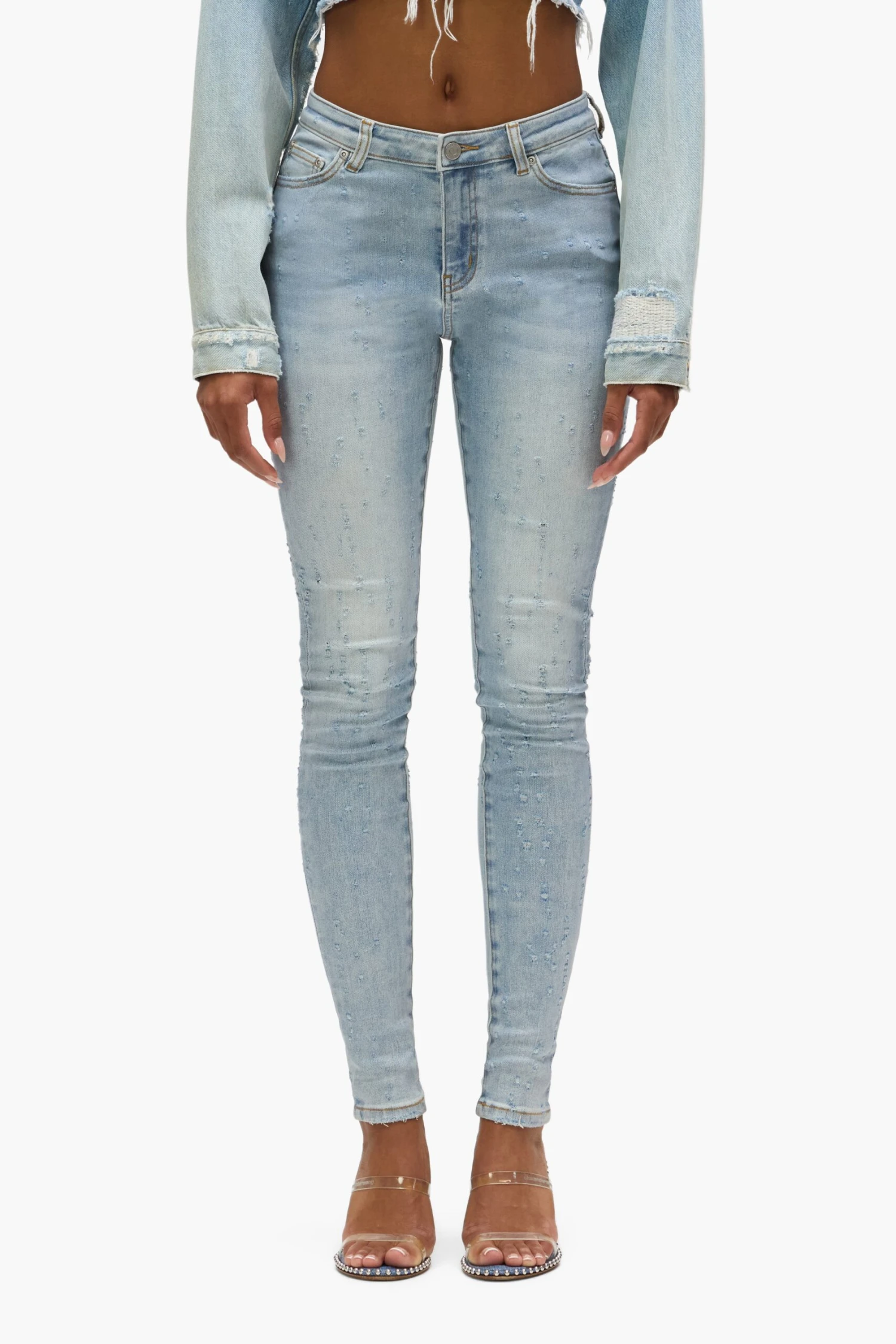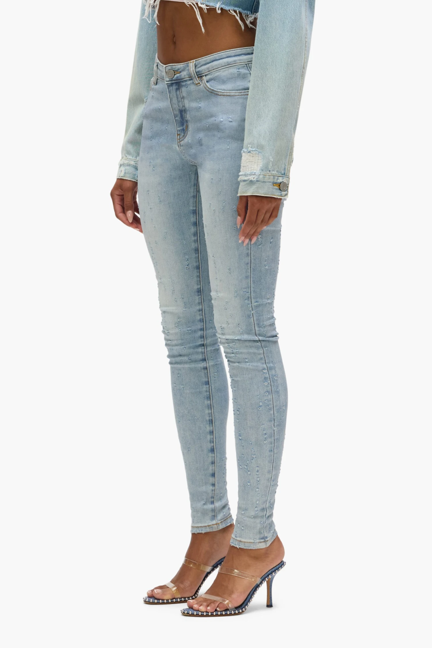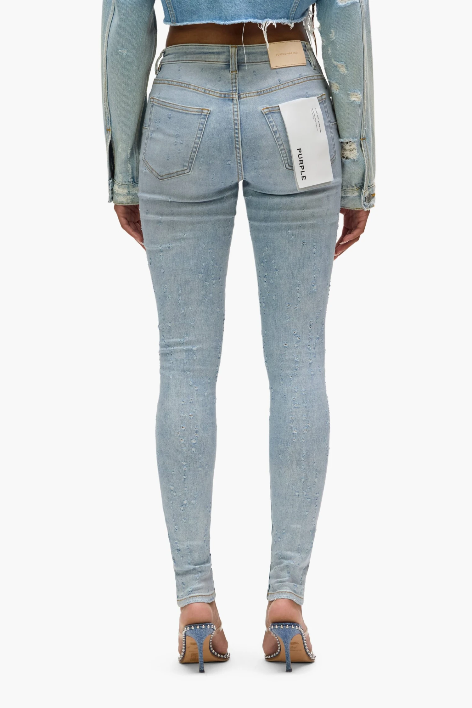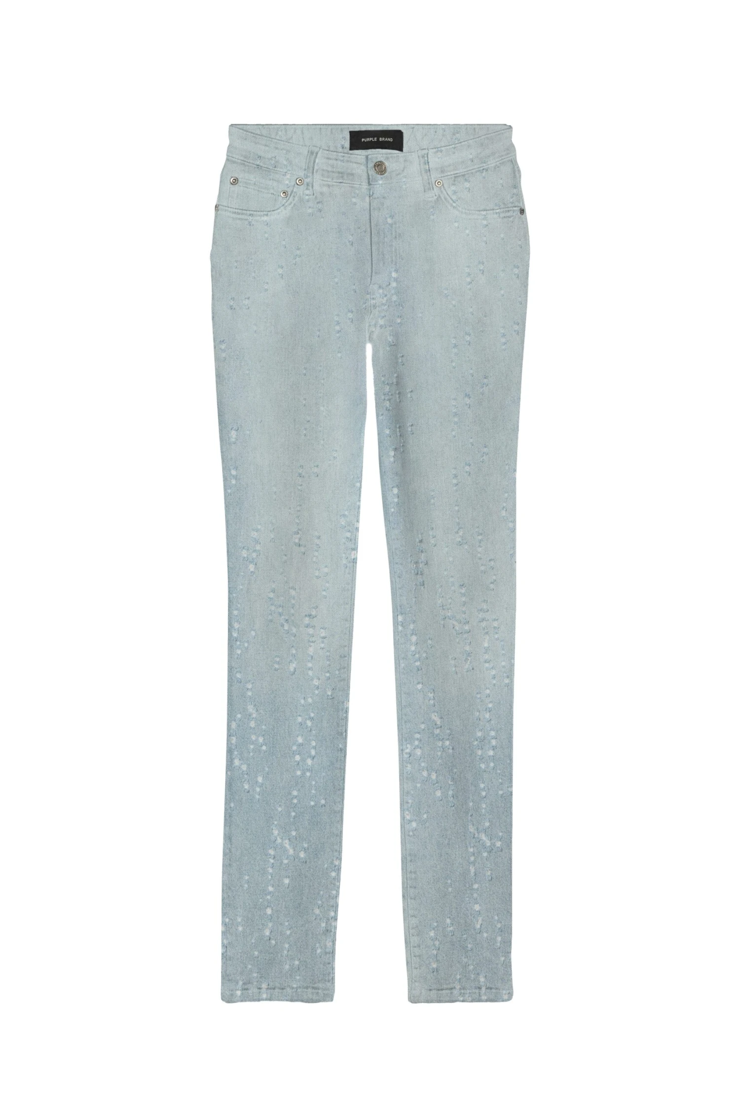 Crafted from premium light indigo super-stretch denim, this mid-rise skinny features five pocket styling, reinforced belt loops, bar-tack stitching, chambray lining for a more comfortable fit, a custom Purple cowhide leather patch and signature hangtag branding.