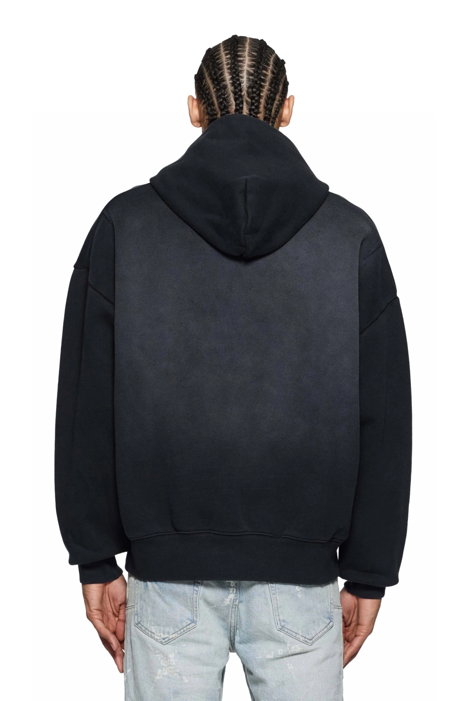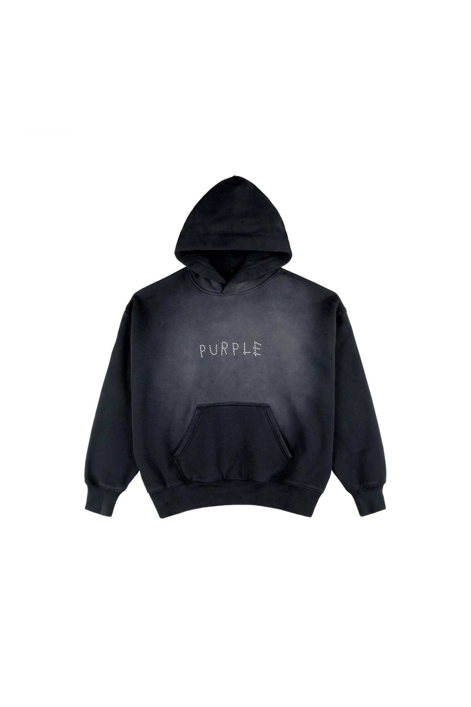 This hoodie is defined by Purple Brand logo lettering done in hotfix studs at the center of the chest. It’s cut for an oversized fit from black heavyweight fleece and features a large kangaroo pocket as well as ribbing at the cuffs and hem.