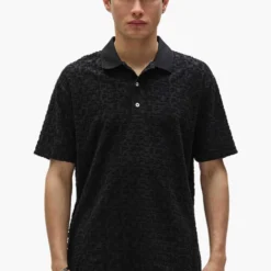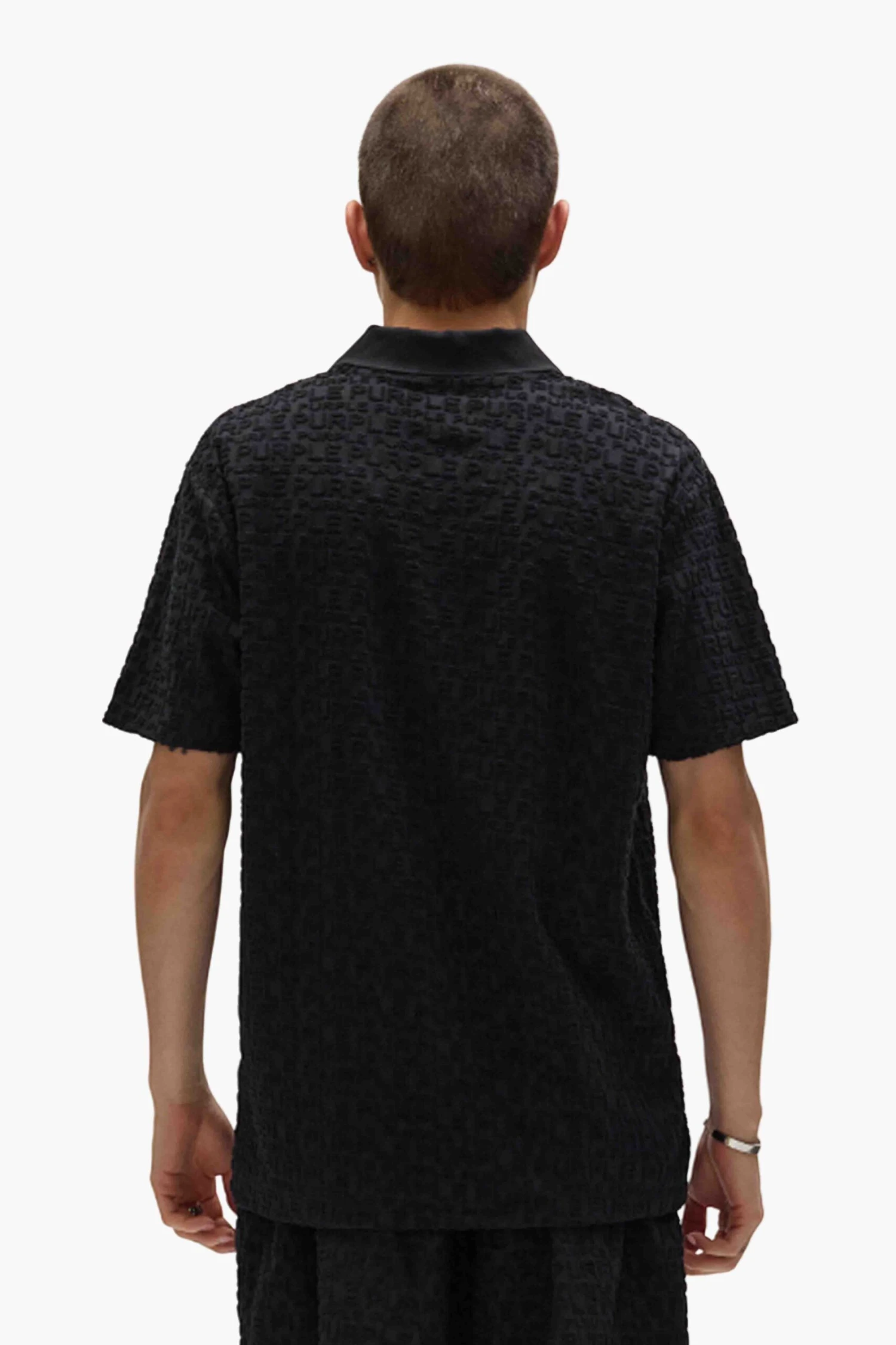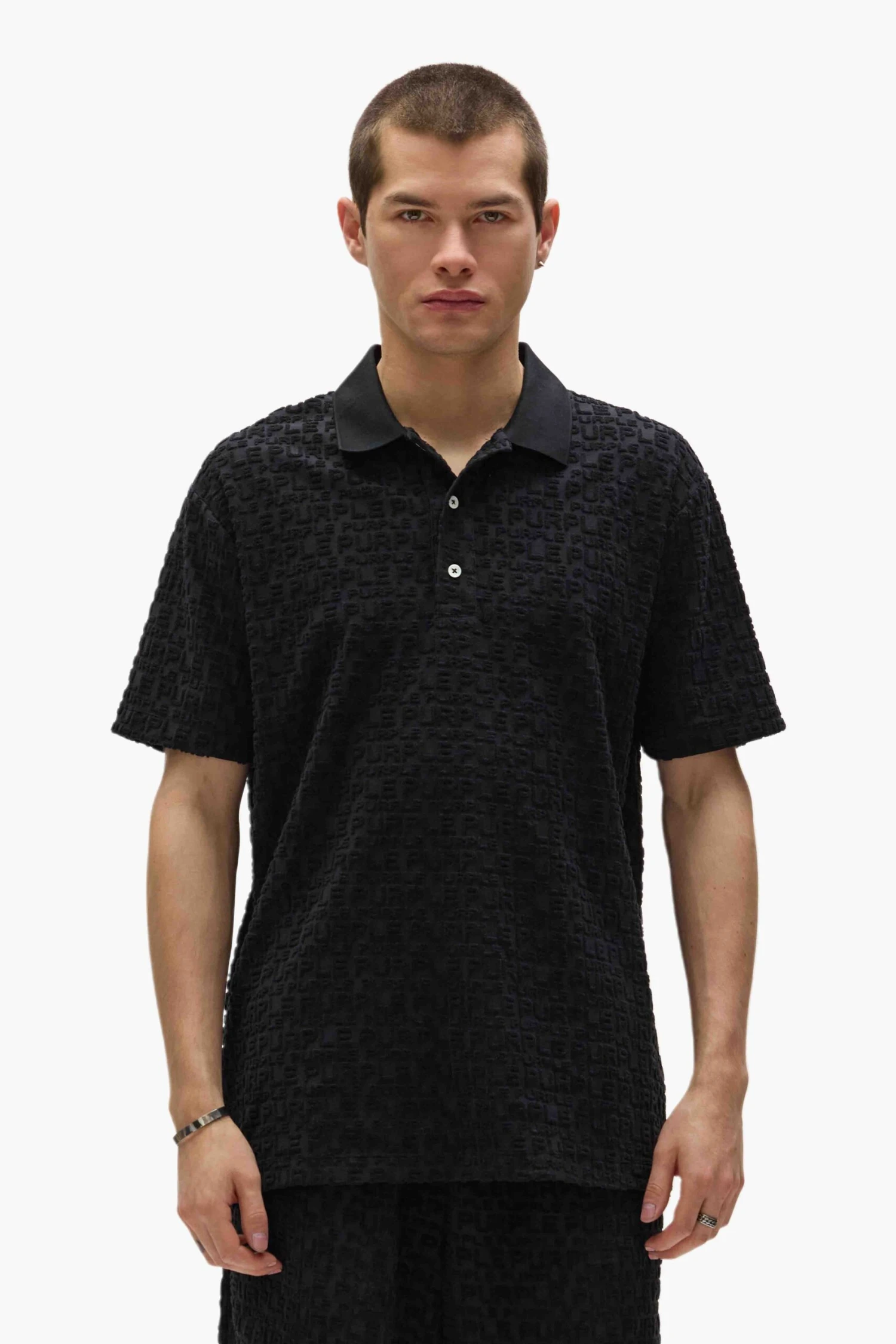 Cut from terry jacquard, woven with Purple brand lettering, this short-sleeve polo tee is designed to a standard fit, with a shirt collar and a three-button placket.