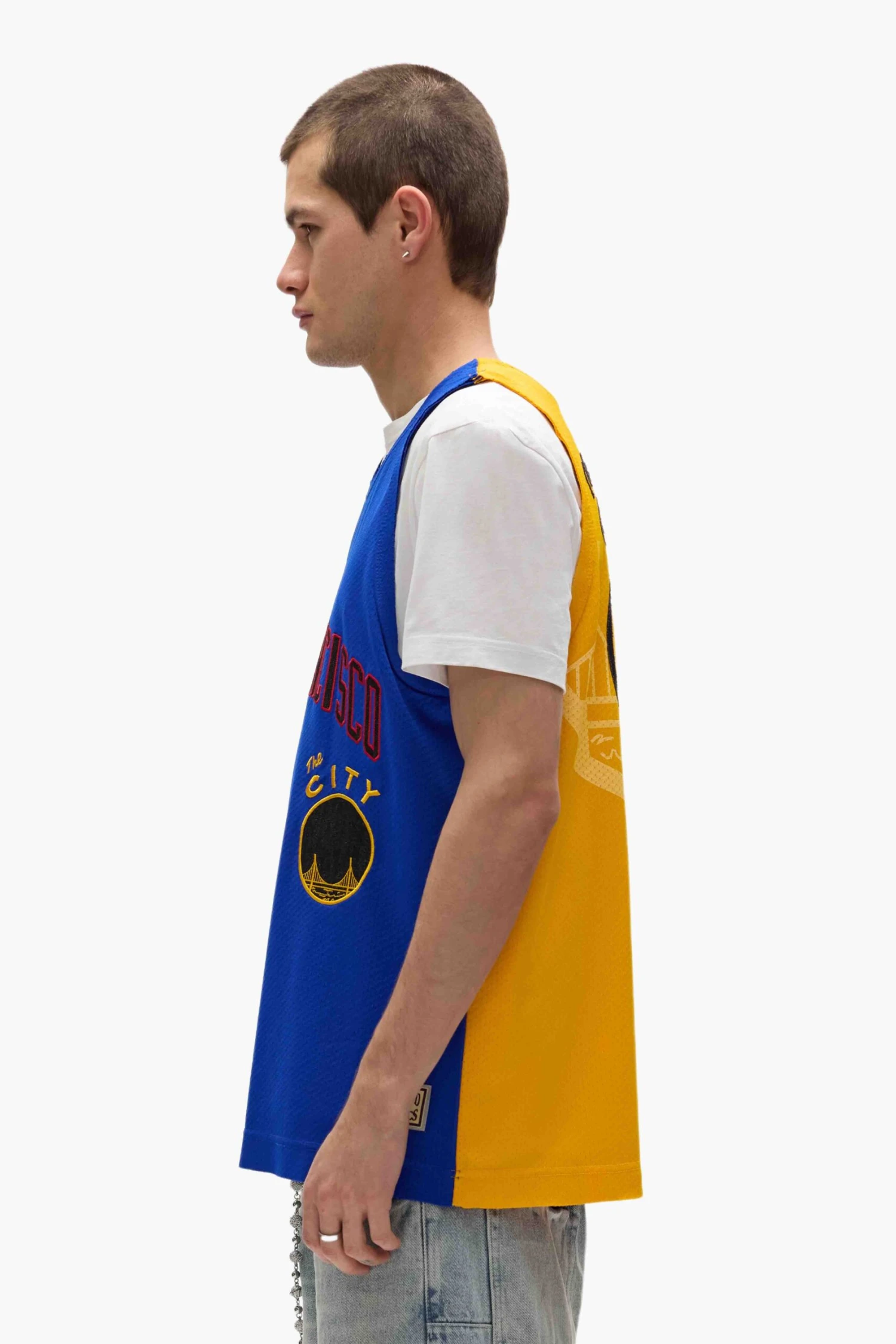 Reinterpreted with a nostalgic design and luxe detailing. This jersey is cut from heavyweight sport mesh, featuring embroidery details and a raw edge finish at the neck & hem.