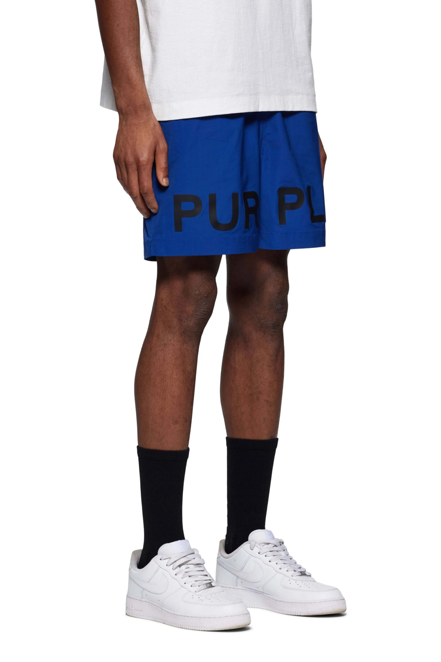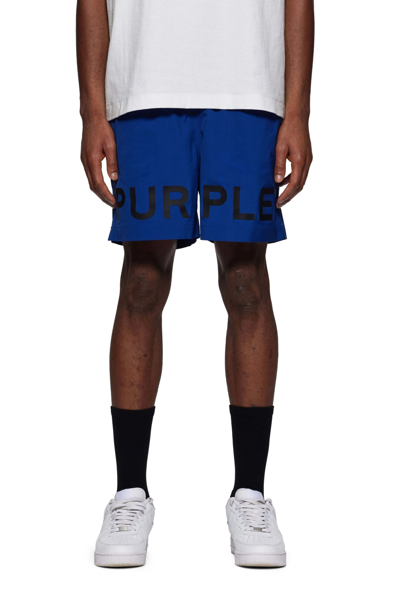 Constructed from a moisture-wicking, odor-reducing stretch polyester, these lightweight blue shorts are fully lined for a comfortable fit. The pair features Purple Brand logo block lettering across the hem of both legs as well as a pull-on waist with drawcords.