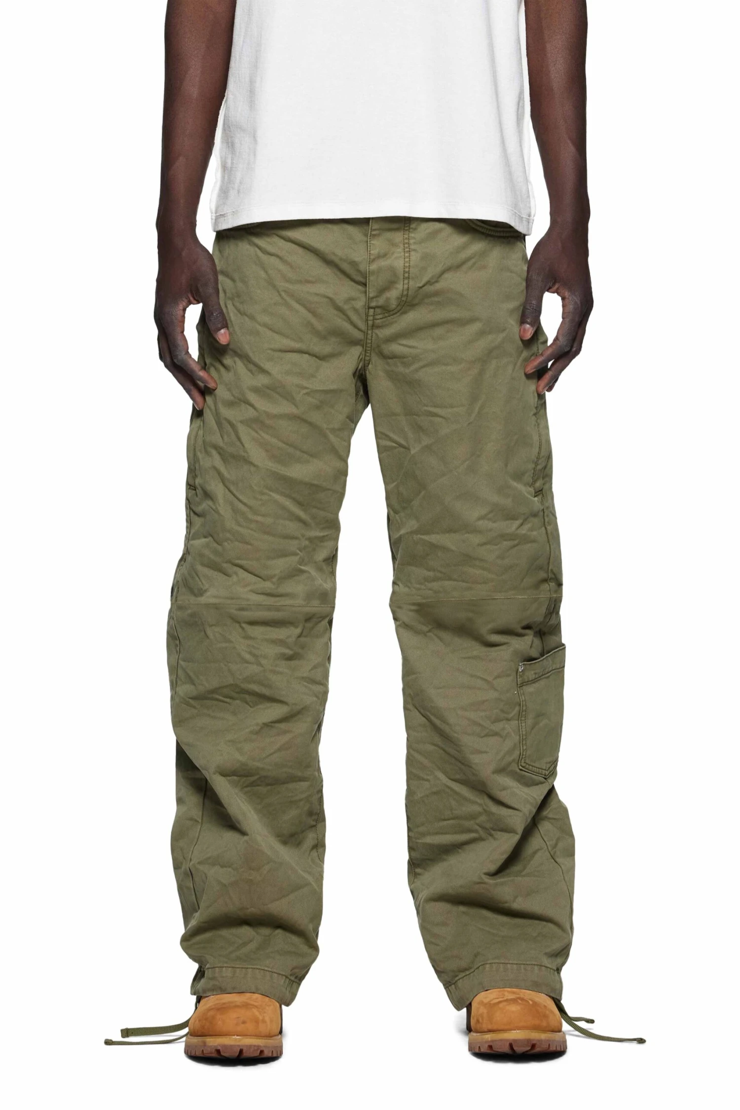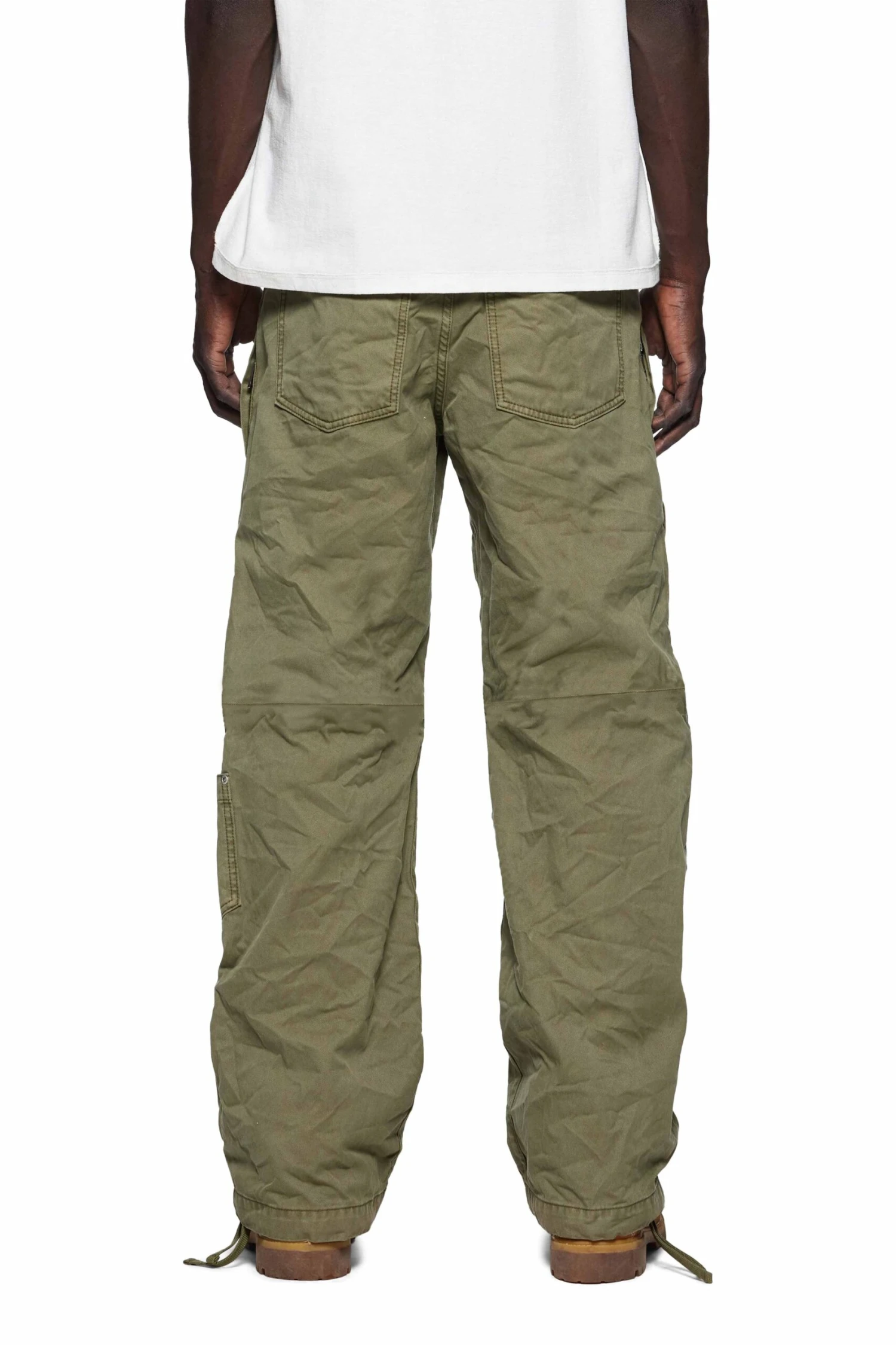 Cut from 100% cotton green fabric, this pant is a utilitarian classic. It has seven pockets, finished with an inner lining, and drawstring ties at the waist and hem.